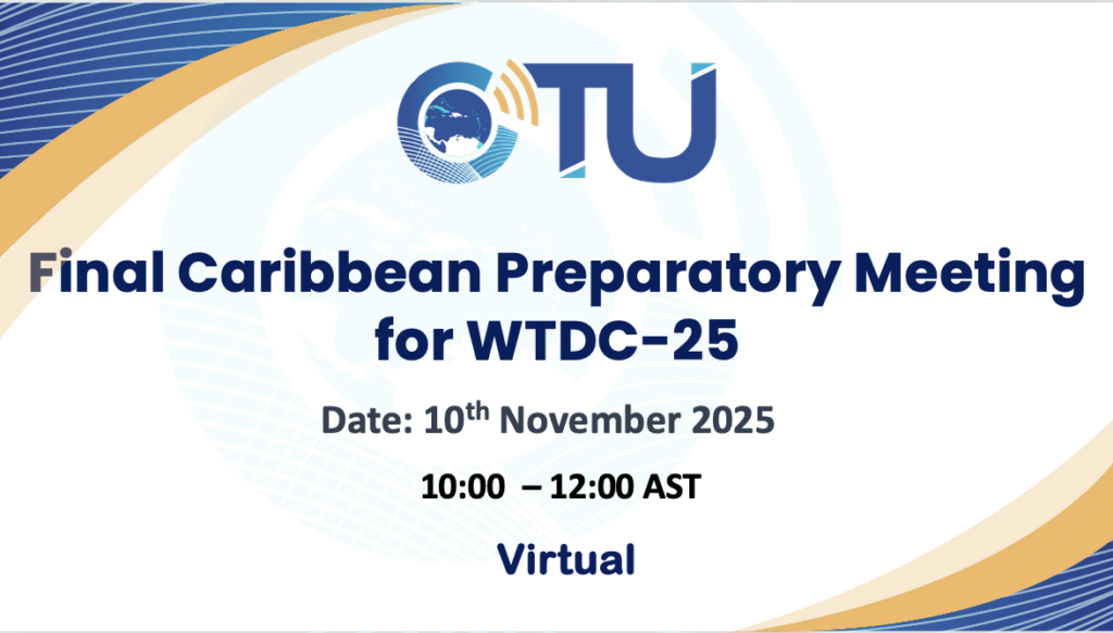 CTU Events 2025 ICT Calendar of Events Toggle List View Upcoming Events Global Encryption Day: Contextualising Digital Rights in the Caribbean Webinar Date: October 21, 2025 Venue: Virtual Spectrum Management Task Force and Workshop Date: November 6, 2025 - November 7, 2025 Venue: Virtual Final Caribbean Preparatory Meeting for WTDC-25 Date: November 10, 2025 Venue: Virtual Past Events